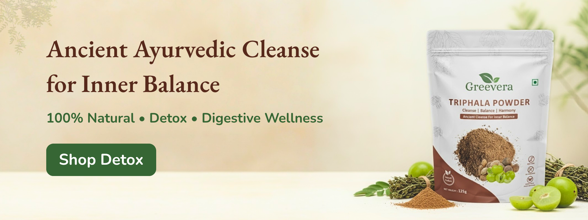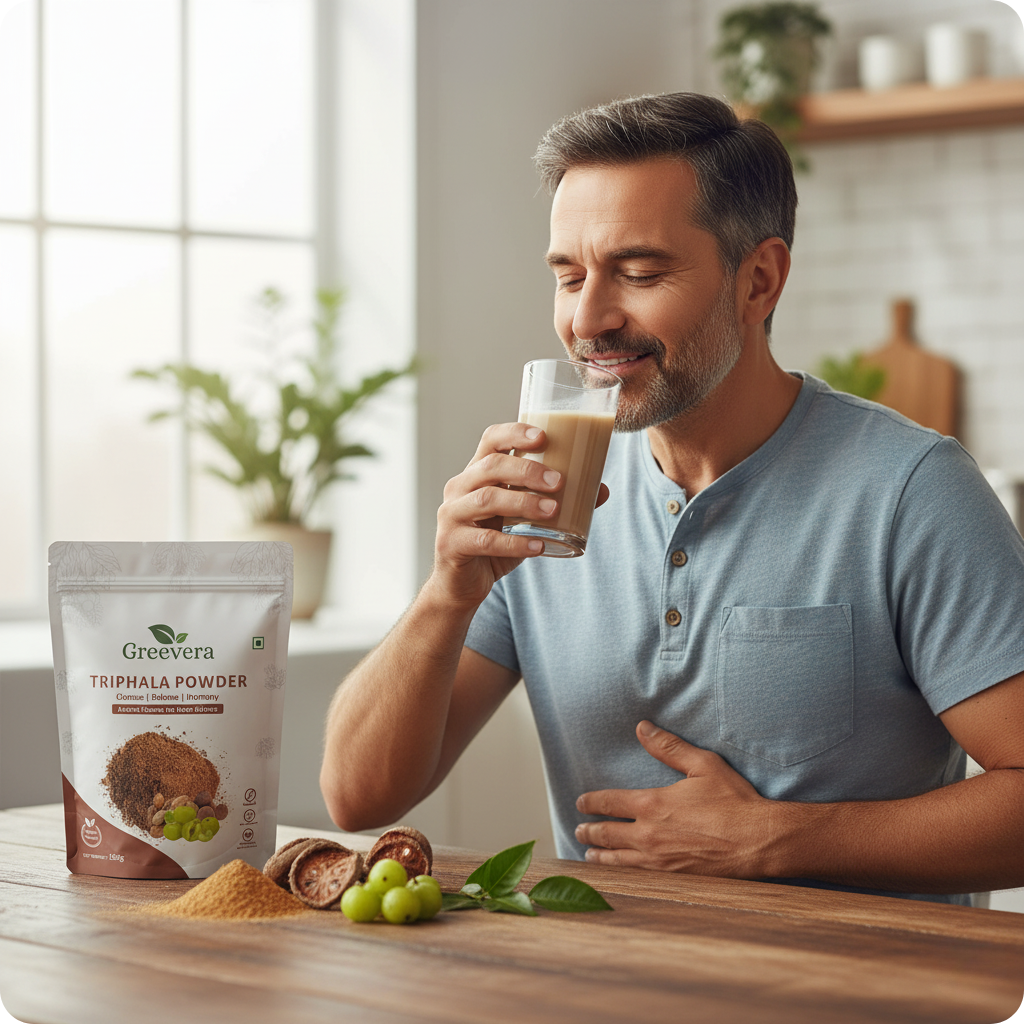 Triphala powder is a traditional Ayurvedic blend of three fruits that supports digestion, detoxification, and overall wellness. Packed with natural antioxidants and fiber, it helps maintain gut health while promoting energy and vitality. Add it to water, smoothies, or warm drinks for an easy daily ritual.