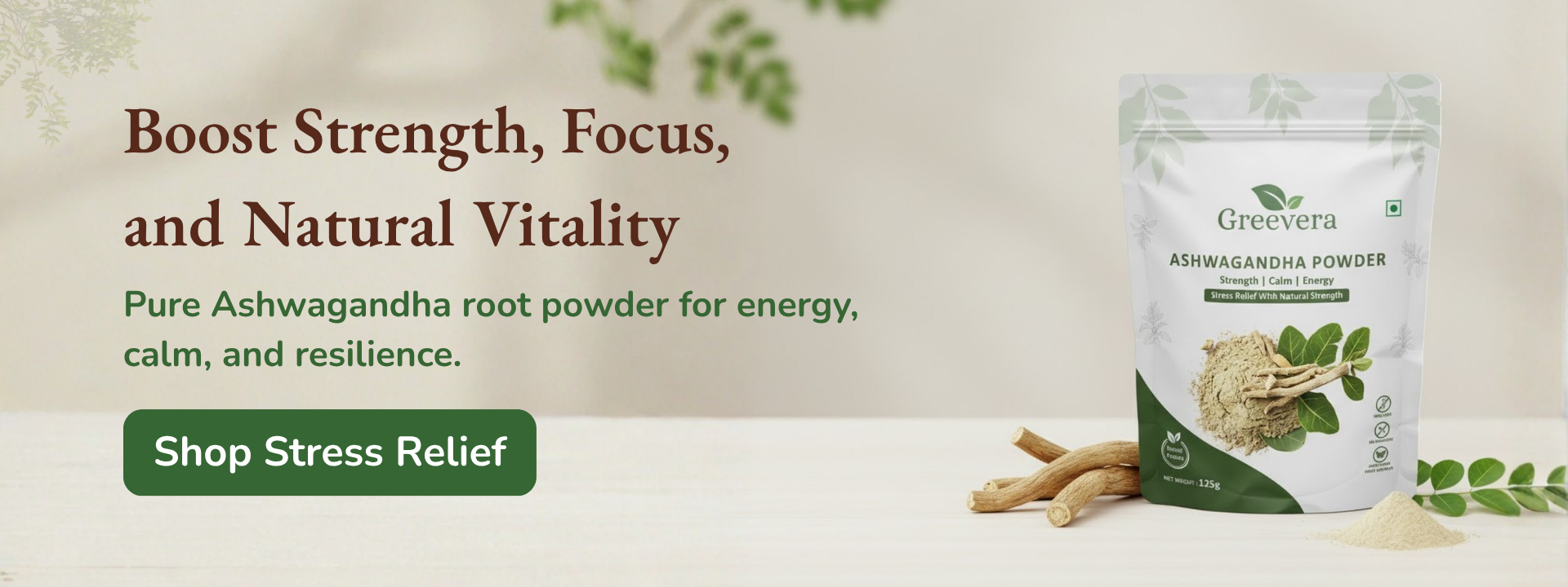 Stress less, focus more, and feel naturally energized. Ashwagandha powder supports your mind, body, and inner balance — your daily dose of wellness in a spoon.