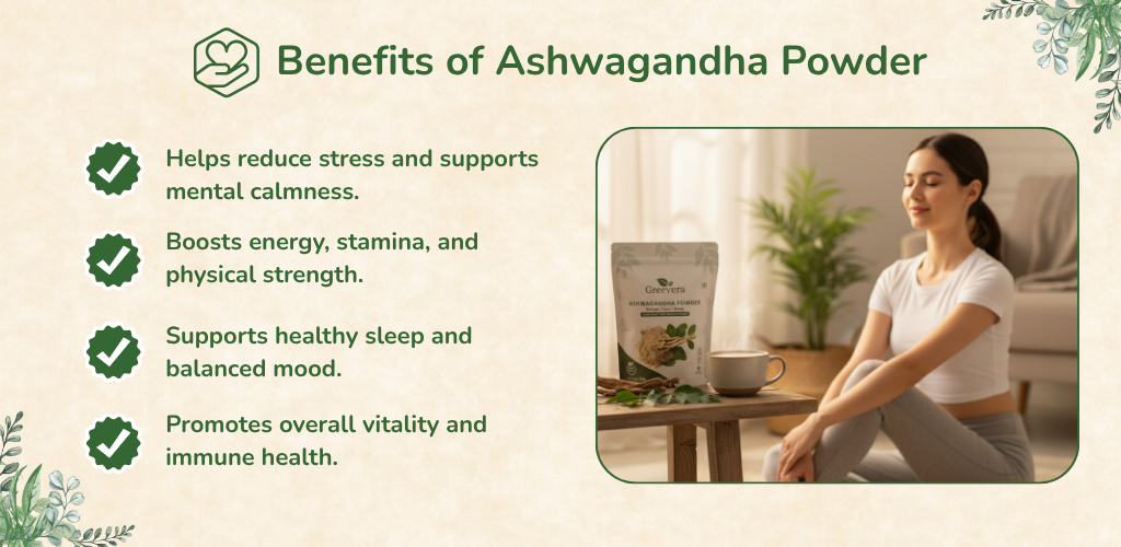 2. What are the main benefits of Greevera Ashwagandha Powder?